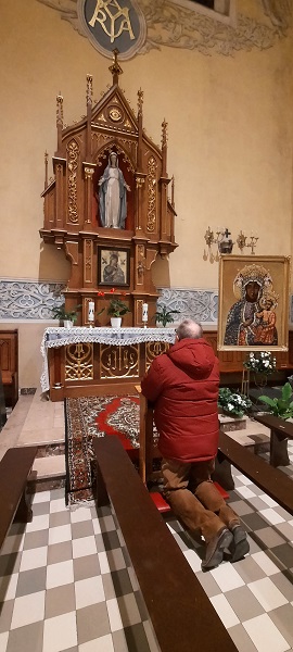 Przed relikwiami błogosławionej Jolenty Heleny (1244-1304) (w kościele Franciszkanów w Gnieźnie) Królewny Węgierskiej z Dynastii Arpadów - Księżnej Kaliskiej i Wielkopolskiej żony Bolesława Pobożnego, matki Jadwigi Kaliskiej - żony Władysława Łokietka